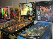 Several dozen pinball games were included in the batch, ranging from tables from the 1970s (Nip-It, Flash, Future Spa), 1980s (Joust tabletop and Baby Pac-Man, a pinball/video game hybrid), 1990s (Deadly Weapon, Doctor Who) the 2000s (AC/DC, Lexy Lightspeed and Heads-Up) to a virtual pinball tabletop (Pinball FX, which ran several hundred tables, many being emulated versions of real pinball machines [such as Kiss] to original tables [such as El Dorado, although not the same as the El Dorado pinball machine from the 1970s]).